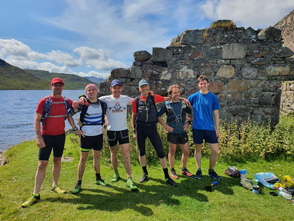 The long way along the river I think was one of the hardest parts of the whole run… It felt never ending. Even though it was flat we couldn’t get up to proper speed. The rough ground slowed us down significantly. It was a well used narrow path used by hikers, runners and cattle! You can only imagine how horrible it was at places. Knee deep mud was just sucking your legs in if you missed the rock! High overgrown grass was covering the path in places which made things even harder.. We could not see where we put our feet. We finally got to the river crossing and continued as fast as we can to join on to the path leading to Loch Eilde Mor Ruins where our next team was already waiting for us. I was left behind here for a moment. I had a nasty stone in my shoe digging into my right foot. I had to get it out. Stones in shoes are runners biggest enemy! I cought up with the guys few minutes after I sorted my feet.