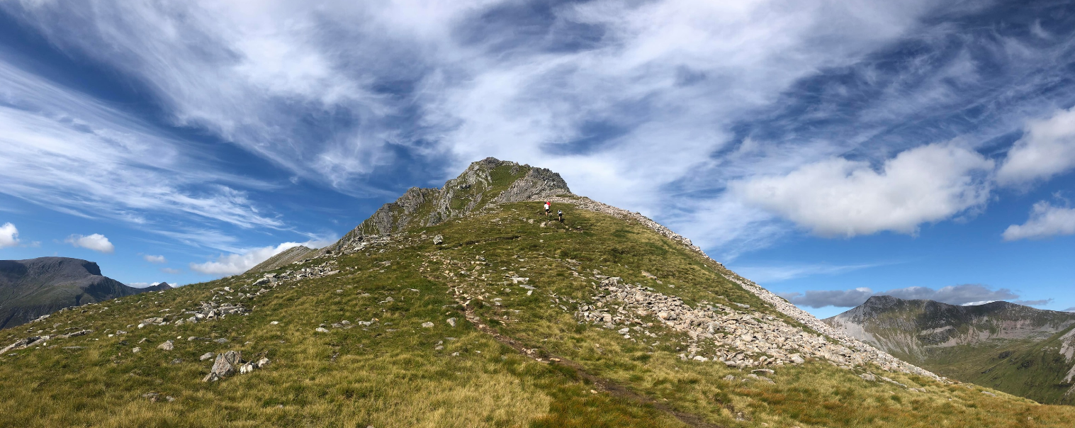 We climbed An Gearanach. It was great to get it out of the way! In the valley between An Gearanach and Stob Coire a’ Chairn we met a couple taking 360’ photos of the Ramsay Round! We were lucky to get in the photo! Can’t wait to have a look at it online!
