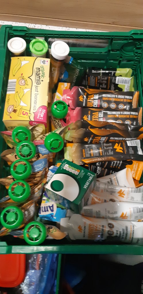 Another thing I always have with me is baby food pouches (fruit pouches are very tasty and refreshing) and a savoury alternative on very long runs like chicken casserole with rice or sweet potato.