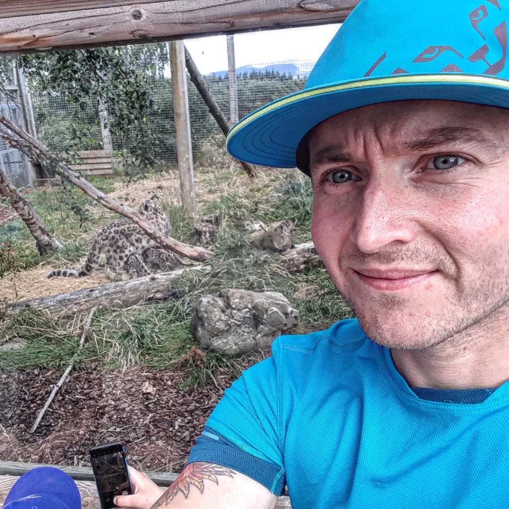 We continued our trip and walked to see the owl, moose and wolfs. On the way back we decided to quickly split as we heared on the radio of one of the park workers there is something happening near the the snow leopard enclosure. Ashley with the kids went to check out the wild cats enclosure near the car park. I ran to the car, dropped our bags and started running towards the bottom part of the snow leopard enclosure. No luck. One last chance was to run to the top. My legs were a bit tired from the hill race I did the day before. I got to the enclosure at the top and spotted people gathering around.