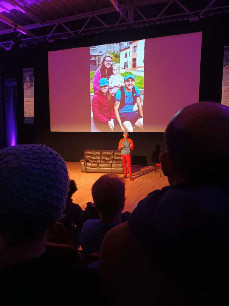 Me and my wife Ashley arrived at the festival and we got to meet the organisers and other speakers for the night. The size of the screen completely blew me away. I knew this is going to be an amazing experience. I had this. I am just going to talk about my life and my running. It can’t be that hard, I thought..